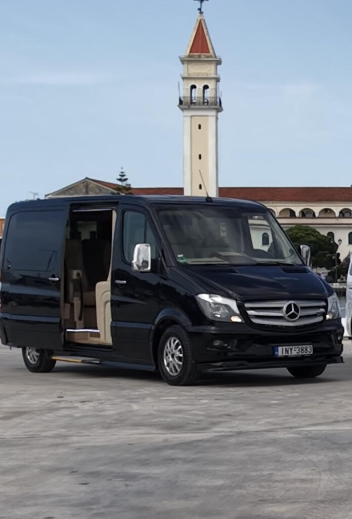 Our fleet includes modern Mercedes taxis and luxury minibuses for all transfer services in Zakynthos. Mercedes Taxi for up to 4 passengers, ideal for airport transfers, hotel and villa transportation. Mercedes Sprinter luxury minibus for up to 12 passengers, perfect for groups, families, weddings and private tours. All vehicles are fully air-conditioned, clean, comfortable and operated by professional local drivers, offering safe and reliable Zakynthos transfer services 24/7.
